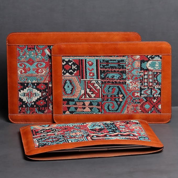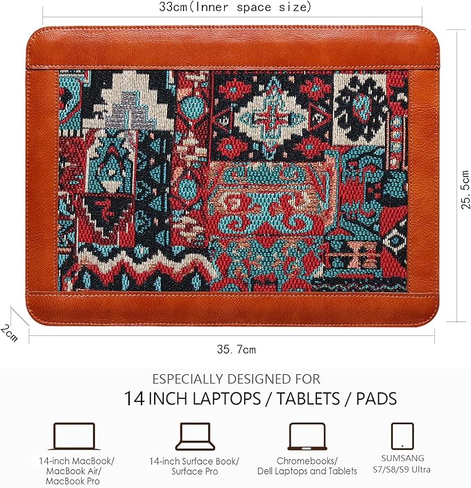 - [Material]-The Laptop Case Made of Jacquard cloth and leather, soft plush lining - anti-static, can effectively absorb shock, reduce damage caused by accidental collisions, and protect the notebook from scratches.