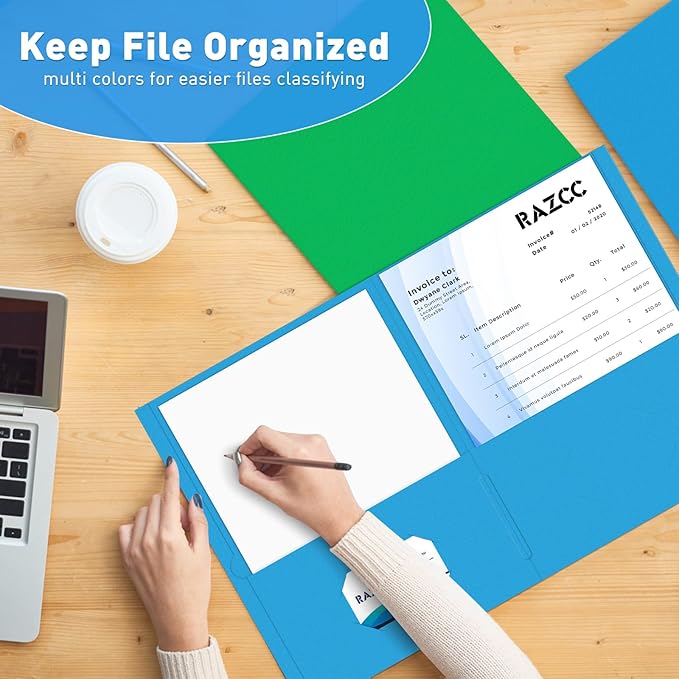 Two Pocket Folders, RAZCC 30 Pack File Folders with Pockets Fit Letter Size Paper, Thick Paper File Folder for School Office Business Home, Assorted 5 Colors
