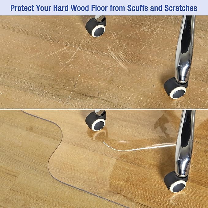 - đăPERFECT FOR HARD FLOORS AND CHAIR CASTERSă: This desk chair mat protects your flooring from scratches and dust of any kind, protects chair casters from wearing. avoiding expensive costs on hardwood floor repairing or chair casters replacement. Not recommended for carpet.