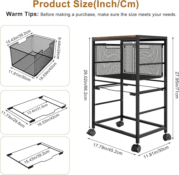 - Anti-Slipping Stopers: Equipped with anti-slipping stoppers on each tier, this hanging file cart prevents drawers from accidentally falling out from the front or back during use. Keep your files secure and organized. Perfect for file cabinet rails