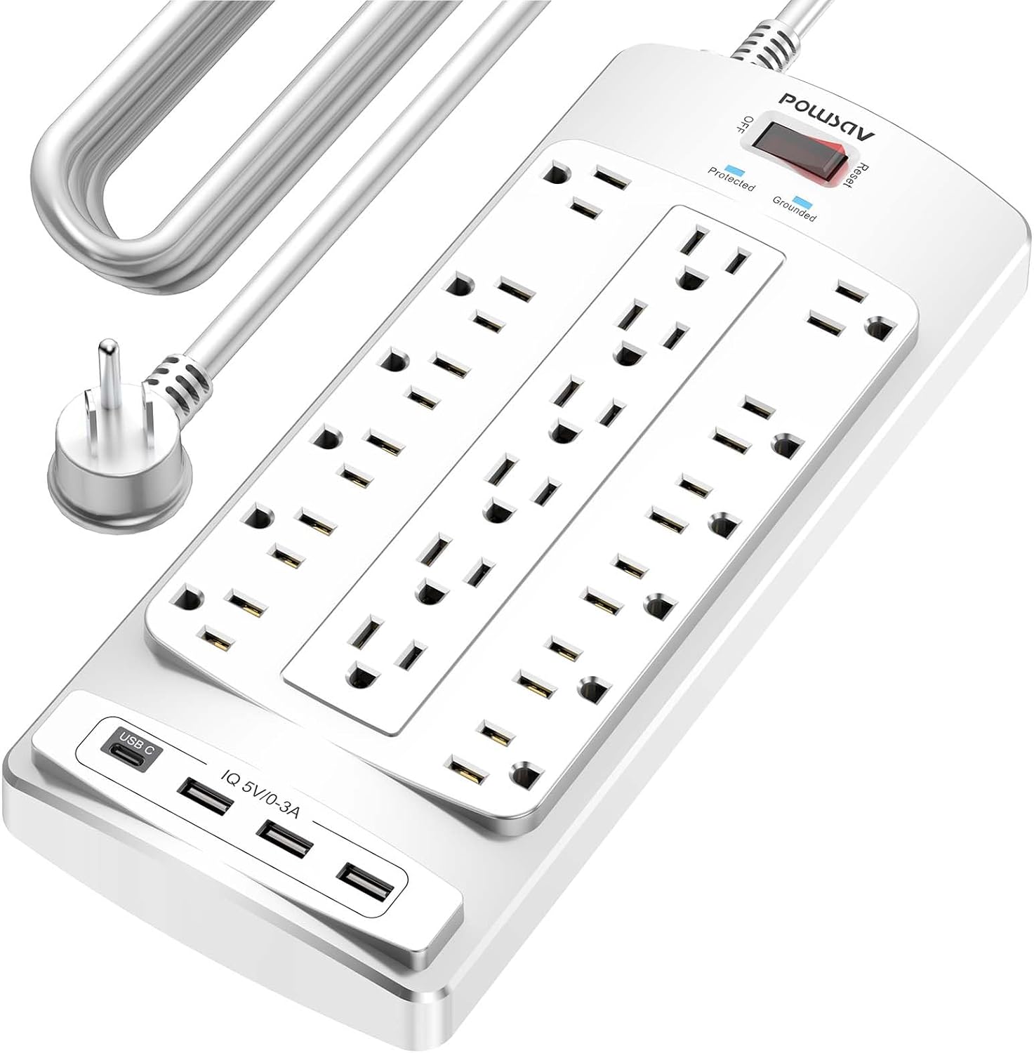 - Power Strip with 18 outlets & 4 USB Ports: 18AC outlets & 4 USB ports (5V/3.0A, 17W) power strip with 20 feet Flat Plug Heavy Duty power extension cord(1875W/15A), surge protector(2100 Joules) with overload protection protects against spikes and fluctuations,Lots of outlets for a computer desk works great for all the electronics a gamer needs.
