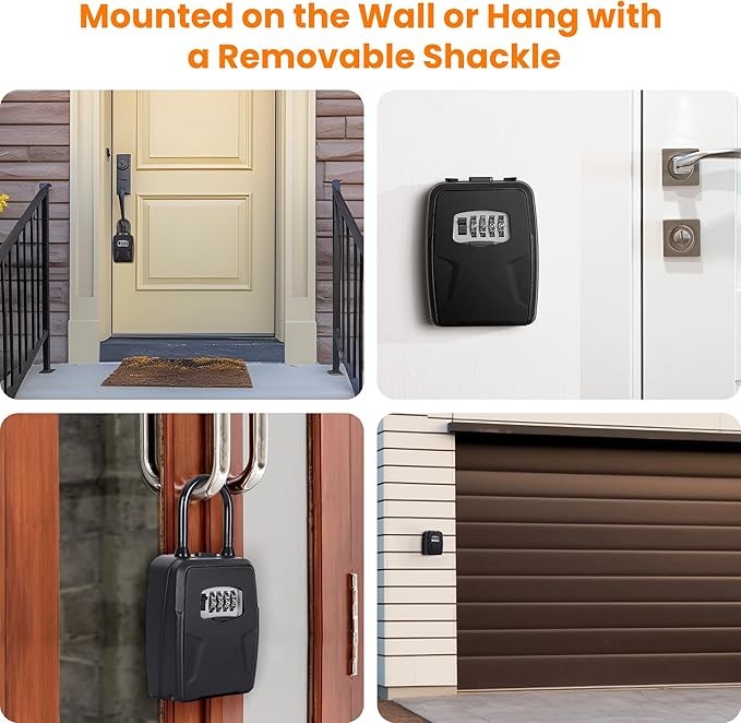 - EASY TO INSTALL AND USE: There are 2 mounting options for this combination lockbox for keys. You can mount it on the wall with supplied plugs and screws; besides, you can hang it anywhere easily including doorknob, metal fence, railing, and pipe, no tools needed;