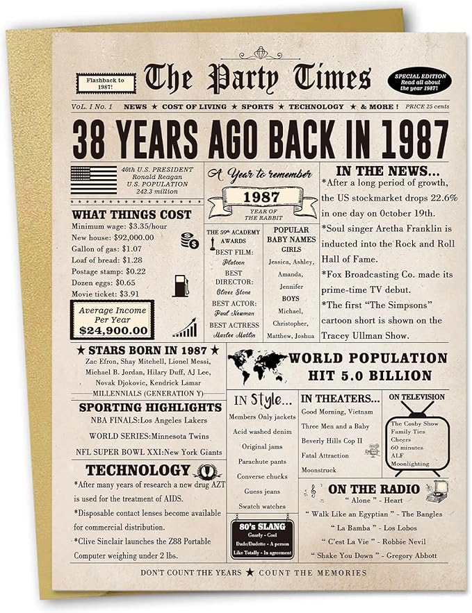 - 【Product Size】A 10.6 x 7.9 inches 38 year old birthday card stands out for its oversized size. It comes with an envelope for easy mailing or gifting.