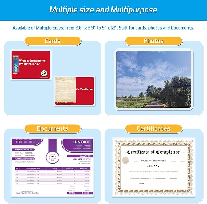 - Protect Your Memories: Safeguard your Letter Size (8.5" x 11") precious photos, documents, certificates, and keepsakes with our laminating pouches! Whether it's cherished family photos or office documents, our laminating pouches keep them safe from spills, tears, and everyday wear and tear.
