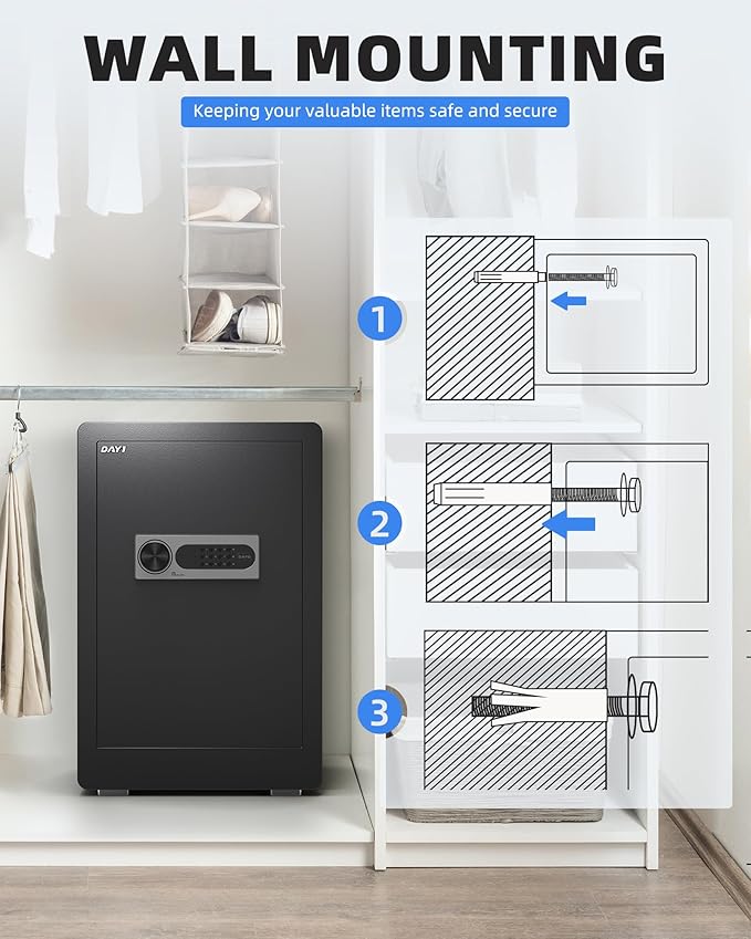 - UNMATCHED SECURITY PROTECTION - The DAYI safe box is crafted with cutting-edge one-piece bending and precision laser-cutting technology, pry-resistant door and 6 x 1.2inch dia. live-locking bolts provide durable and reliable protection. Also, the advanced locking technology that resists both physical attacks and lock manipulation, our safe keeps your valuables secure.