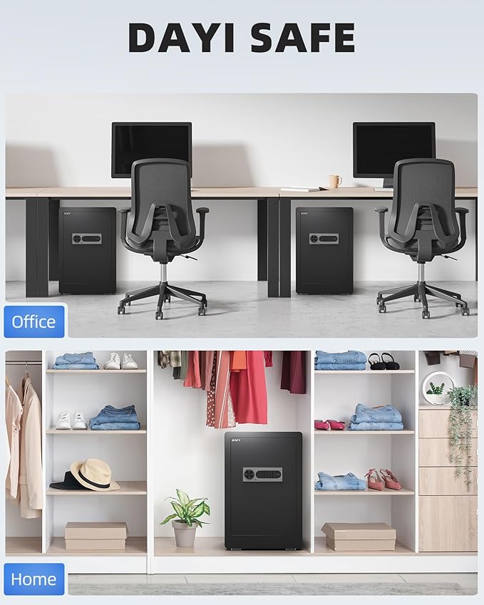 - DUAL ALERT SYSTEM FOR PEACE OF MIND - With a dual alarm warning system, the DAYI home safe ensures your belongings are protected. Three incorrect password attempts or any forceful breach trigger a loud 70-decibel alarm, deterring intruders.
