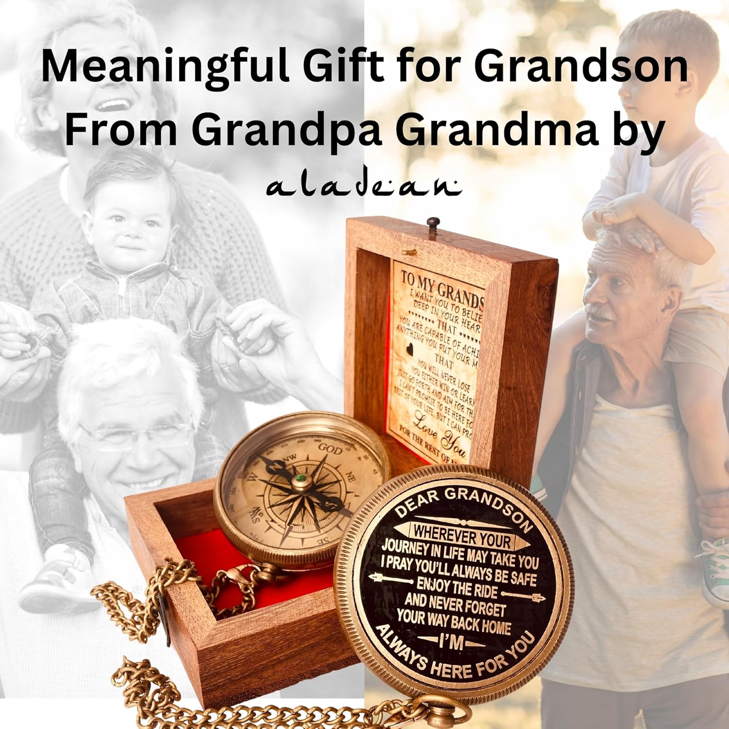 - Gift for Grandson from grandpa Grandma - Engraved Antique Style Brass Compass - Reinforcing & Reminder of Love & confidence for Grandson's Gift idea for boys on Birthday, Baptism, Confirmation, Graduation gift for Him, Boy from grand mother & grand father