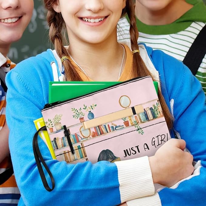 COEQINE 9x11 Book Covers for Paperbacks Pink,Just Girls Who Like Books Cute Cartoon Girls Print Teens Girls Book Protection Book Sleeves with Pen Sleeves