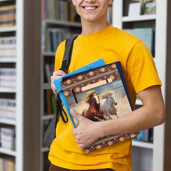 COEQINE Aztec Horse Book Covers Kids Hardcover Book Cover with Pockets Western Animal Book Sleeves with Pocket Book Organizer Pouch with Chain Portable