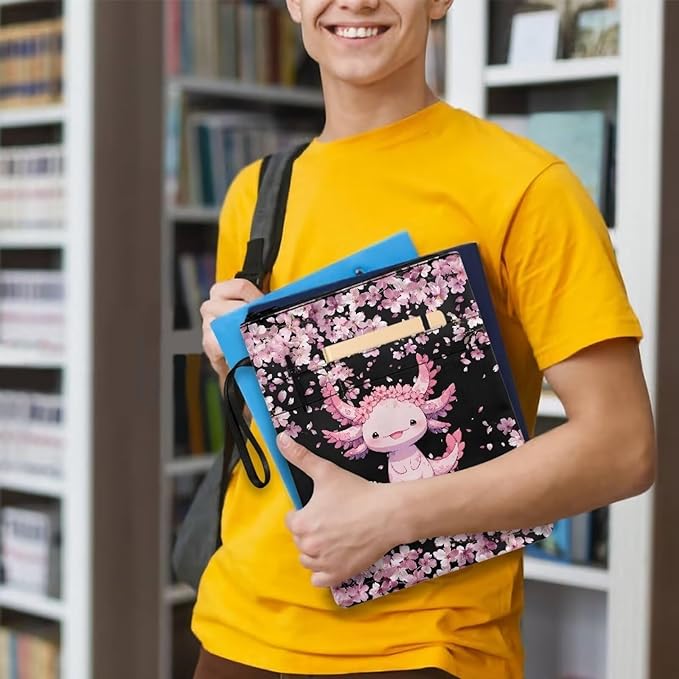 COEQINE Axolotl Flower Book Covers for Girls Large Capacity Book Sleeves Cover with Zipper Portable Book Cherry Blossom Book Pouch Case