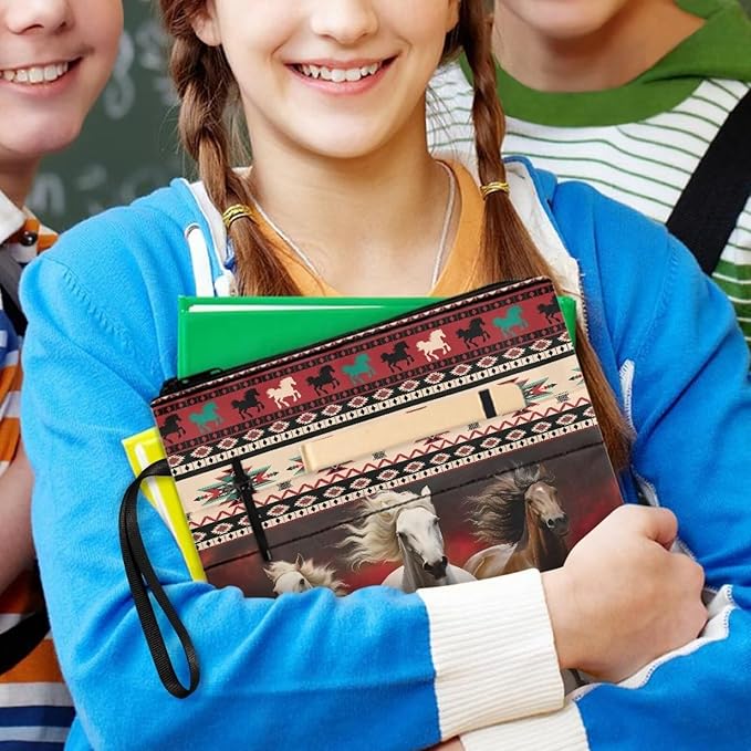 COEQINE Horse Book Cover with Zipper 9x11 Inch Large Capacity Book Sleeves Cover with Pen Holder Pocket for Portable Book Travel Book Lovers
