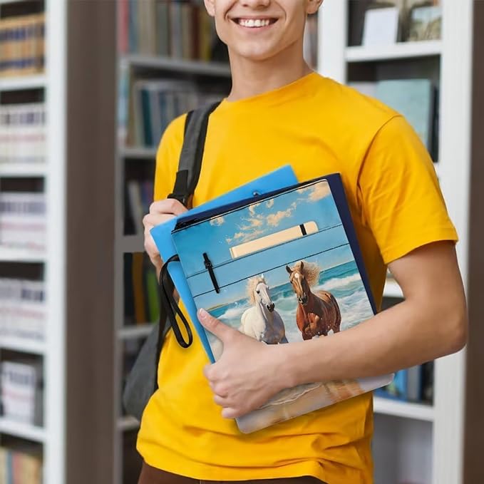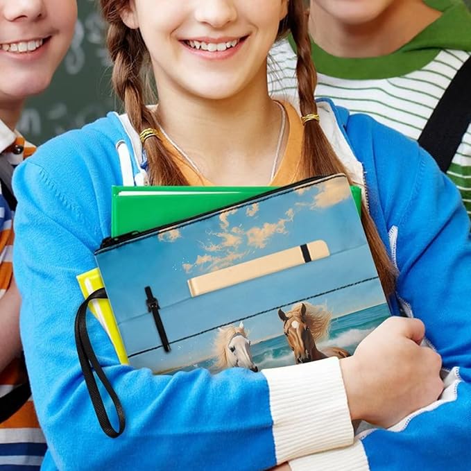 COEQINE Running Horses Book Cover with Zipper for Kids Women Portable Book Pouch Book Lovers Gifts Bookish Gifts Book Cover with Zipper for Hardcover Paperback Washable