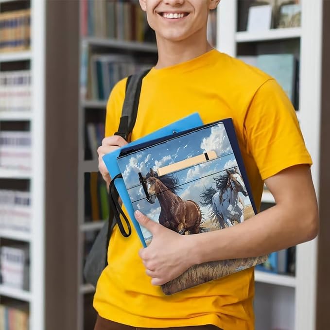 COEQINE Watercolorful Horses Book Cover Zippered Book Cover with Pen Holder Portable Book Pouch Book Lovers Hardcover Book Dust Cover Case Washable
