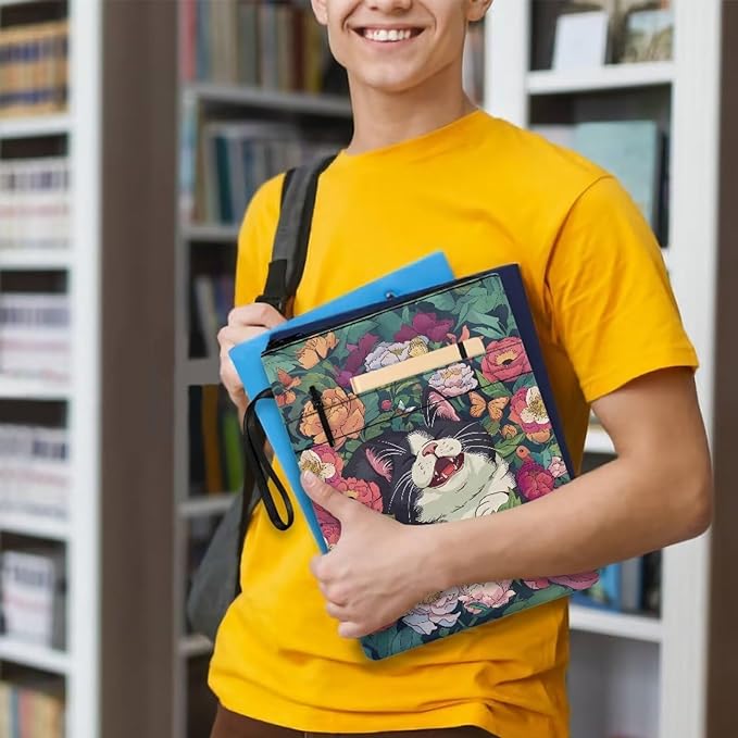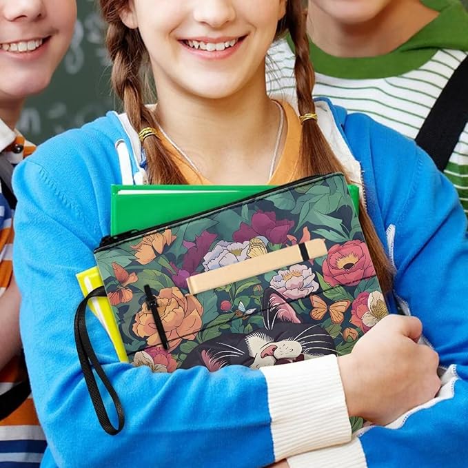 COEQINE Book Sleeves Cats Flower Book Covers Book Lover Gifts Book Protector with Zipper Book Covers for Paperbacks Book Pouch with Pockets Travel Book Case