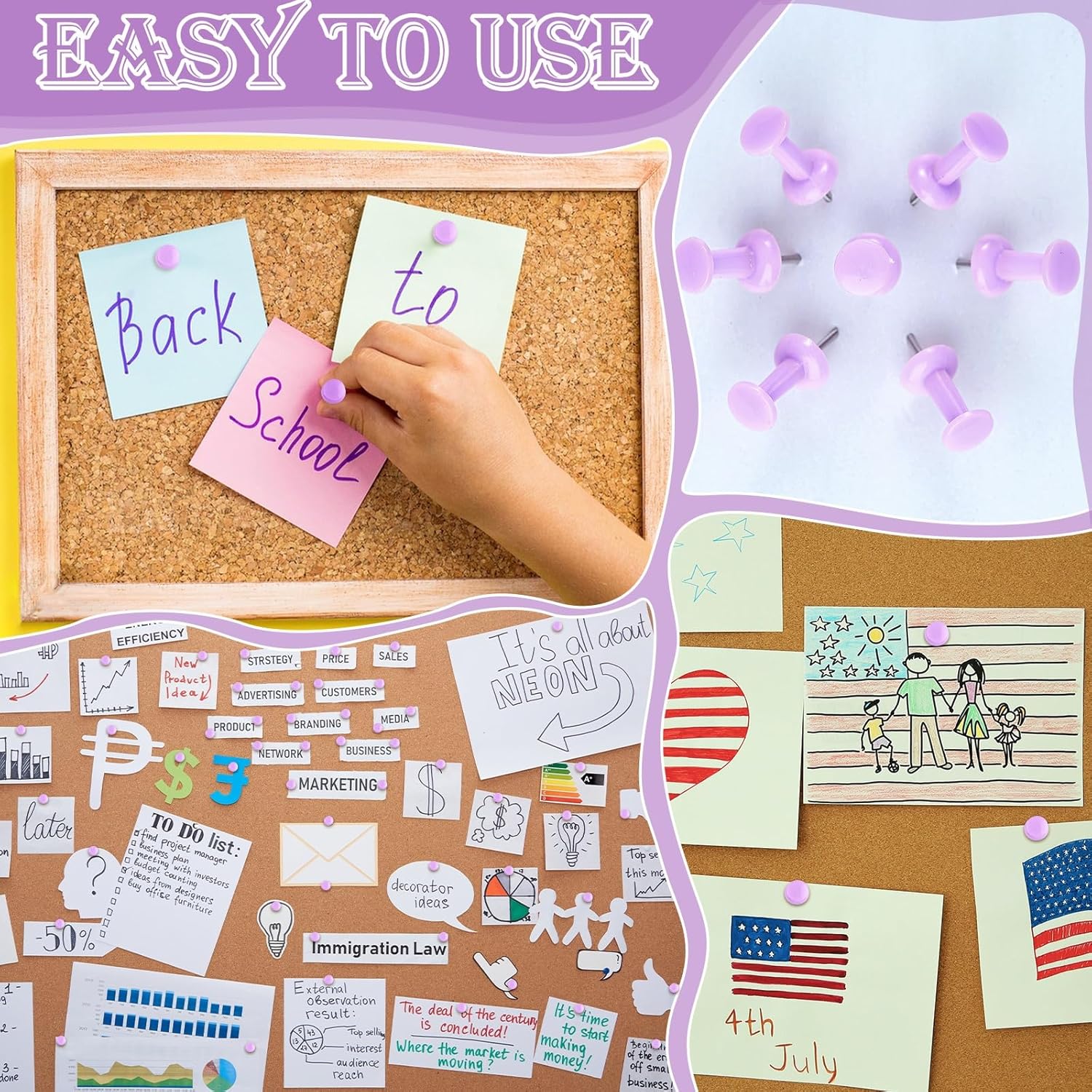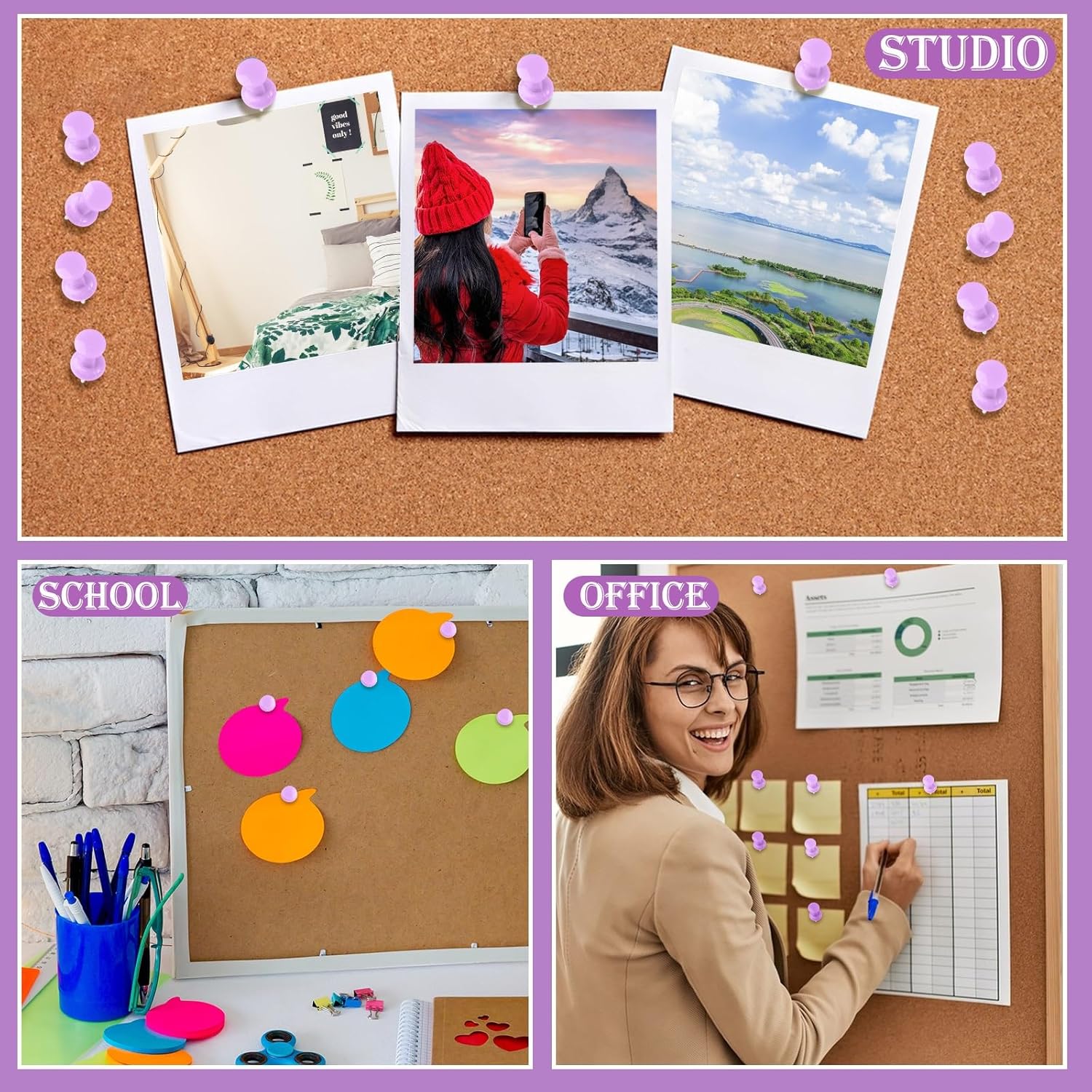 220 Count Purple Push Pins Standard Plastic Head Steel Point Thumb Tacks Decorative Push Pins for Cork Board Wall Hanging Bulletin Board