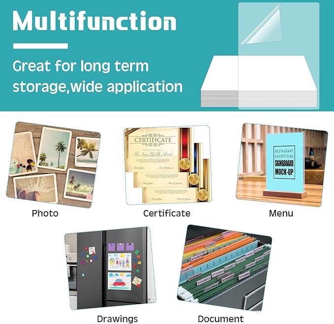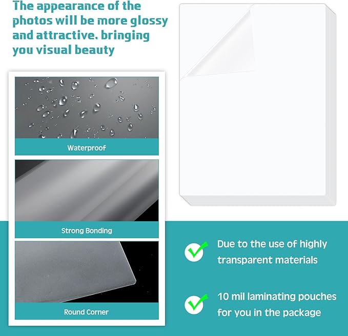 - Package Content: you will receive 300 pieces of matte laminating sheets, measuring about 9 x 11 1/2 Inches/ 22.8 x 29.2 cm, sufficient for your daily use and replacement, ideal for photos, scrapbooking, posters, journals, and other DIY projects