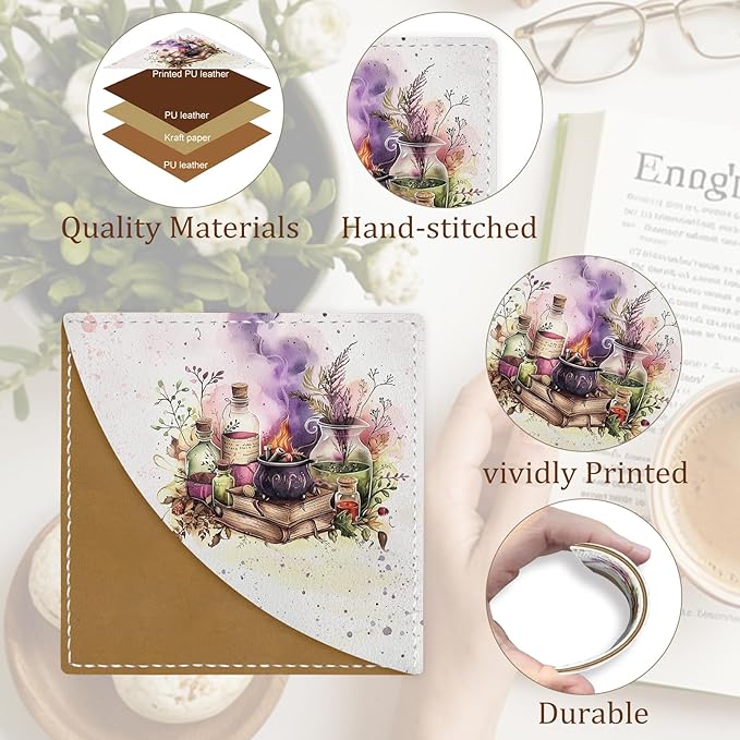 - Magic Potion Bottle Art Design: Enhance your reading adventure with leather corner bookmarks adorned with magic potion bottle art. This enchanting design evokes the allure of alchemy and the mysterious, tapping into the fascination with magical worlds. It's a practical yet magical accessory that secures your page while sparking wonder and excitement, making it a perfect gift for fantasy lovers and dreamers alike.