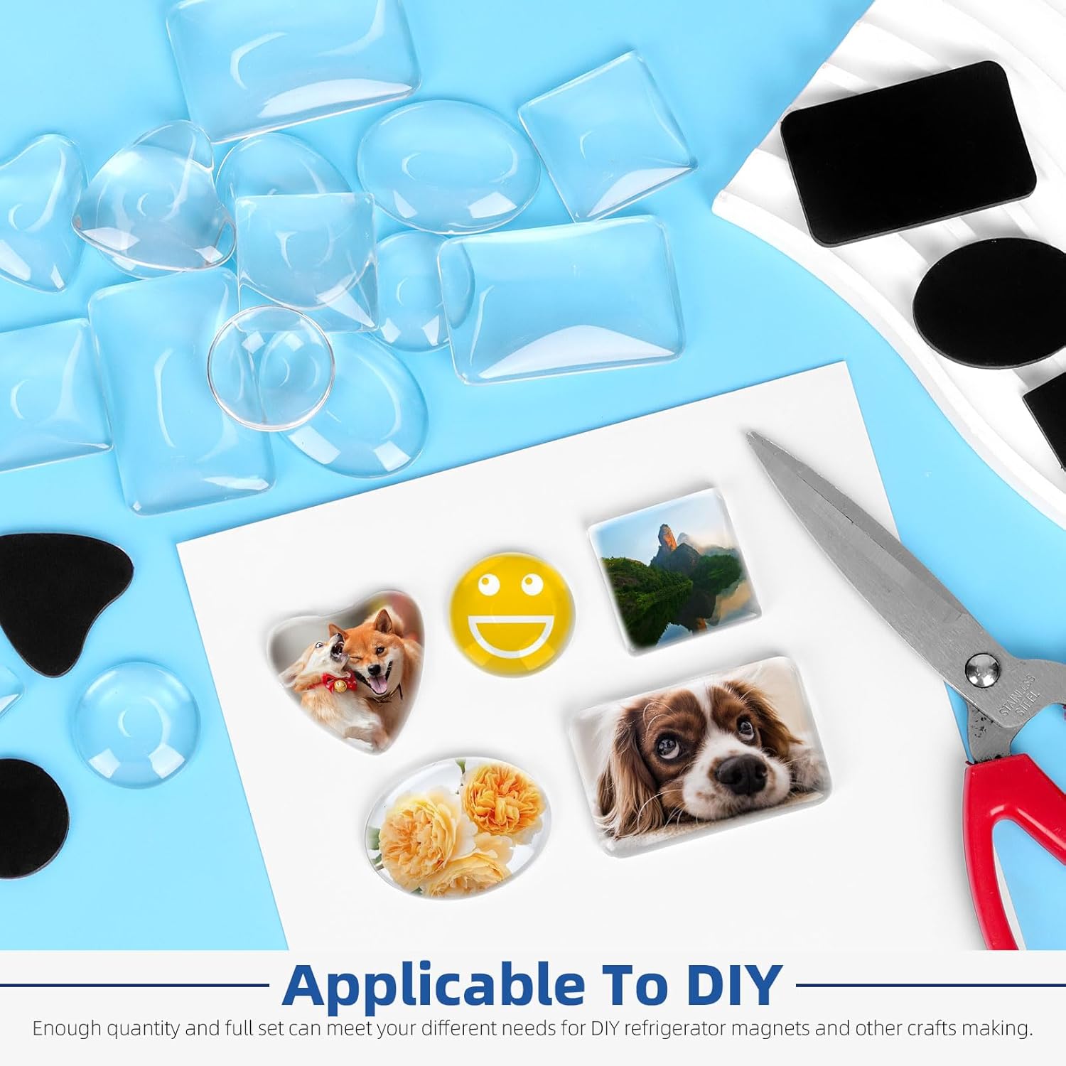 - ♛【Widely Applicable】: Ferrite magnets with adhesive backing and clear glass cabochons for DIY fridge magnets add more fun and convenience for sticking sticky notes in daily life. You can also use them to make earrings, necklaces, pendant jewelry and other handicrafts to enjoy more fun with friends and family.