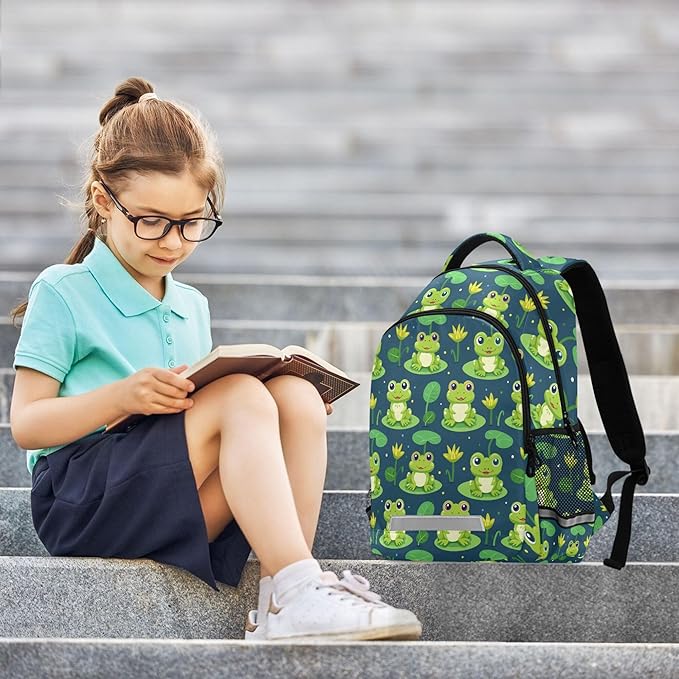 MNSRUU Laptop Backpack with Chest Strap, Cute Frog School Backpack, Travel Hiking Backpack for Boys Girls Teen Adult, Rucksack, Knapsack