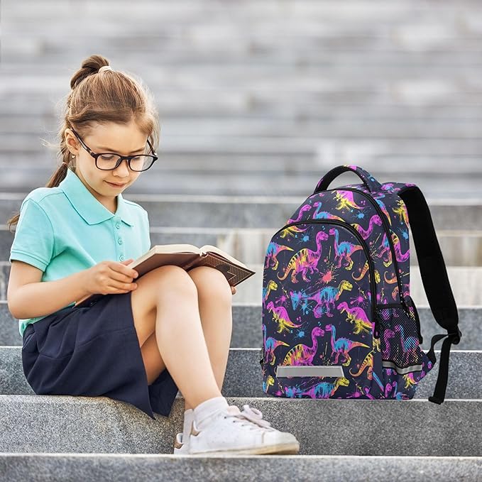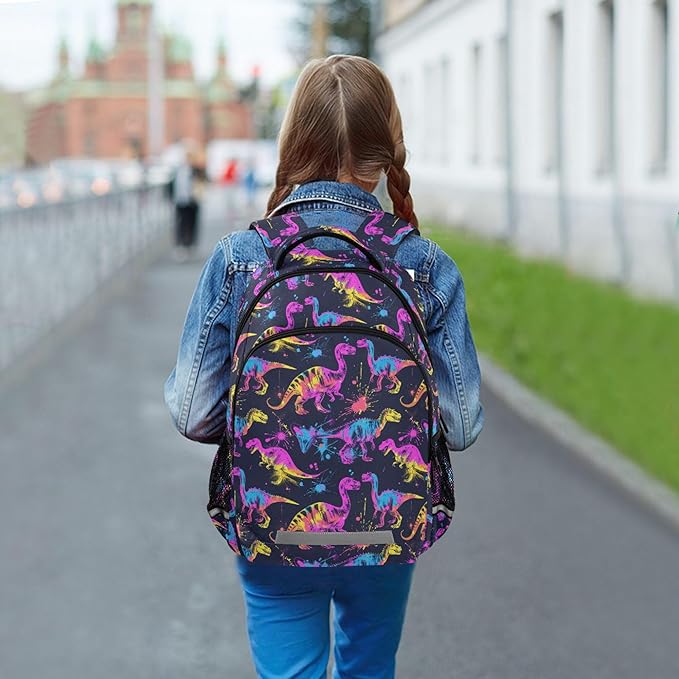 MNSRUU Laptop Backpack with Chest Strap, Neon Funny Dinosaurs School Backpack, Travel Hiking Backpack for Boys Girls Teen Adult, Rucksack, Knapsack
