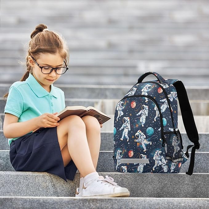 Laptop Backpack with Chest Strap, Astronauts and Space Motifs School Backpack, Travel Hiking Backpack for Boys Girls Teen Adult, Rucksack, Knapsack