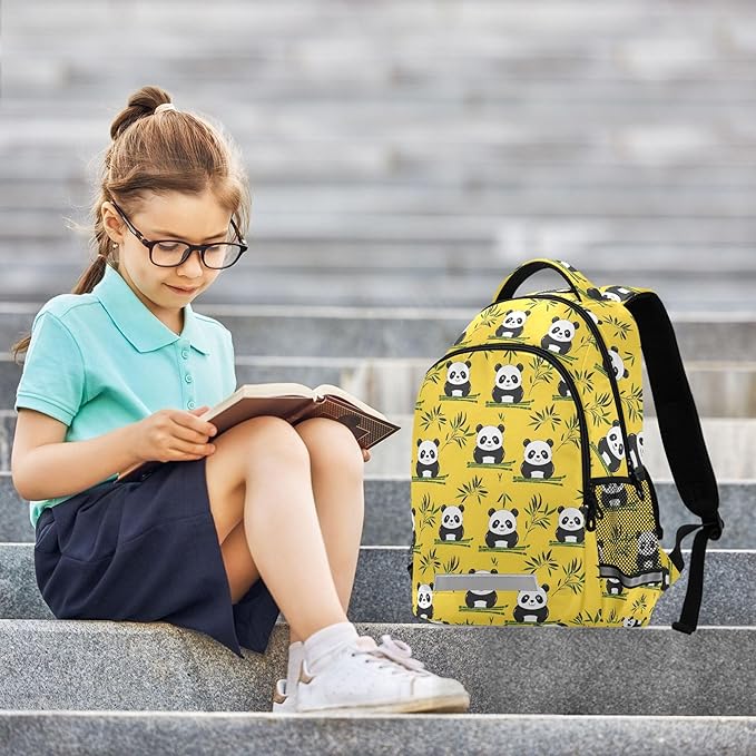 MNSRUU Laptop Backpack with Chest Strap, Panda and Bamboo School Backpack, Travel Hiking Backpack for Boys Girls Teen Adult, Rucksack, Knapsack