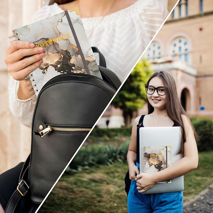 - 【Interior Pockets & Best Gift for women】 Journaling notebook features a durable hardcover with pink marble and a double sided storage pocket can hold things as you like. The golden twin-wire thick spiral and golden horn guards can secure and protect the spiral notebook. Ideal for all office, school, and home use, it is also a great decoration for your desktop. More, kutoda hardcover notebook is a perfect gift choice for friends, family, classmates, and coworkers.