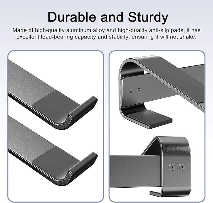- 【Stable and Robust Aluminum Alloy Stand】The laptop stand for desk is designed with a triangular structure and a four-point force model, which provides excellent load-bearing capacity and stability, ensuring that it will not rock or sway. This allows you to maintain a stable working state when using your laptop.