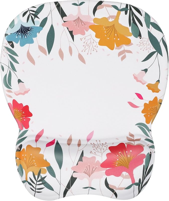 MROCO Ergonomic Mouse Pad with Gel Wrist Rest, Comfortable Mousepad with Smooth Wrist Support Surface and Non-Slip PU Base for Pain Relief, Computer, Laptop, Office & Home, 9.4 x 8.1 in, White Flower