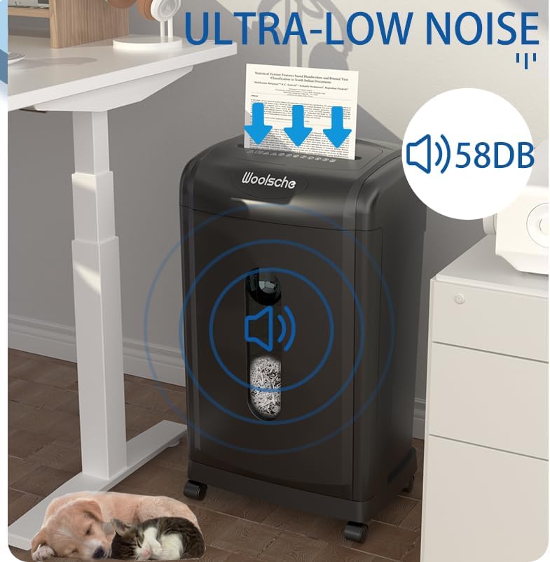 - 【Ultra-Quiet&Durable for Office Use】Shredder for Home shredding paper with staples and credit cards /CDs(one at a time), receipts, bills and important documents. shredders for home office Shred paper cannot be recovered. 58 dB low noise provides a quiet and comfortable for Office use