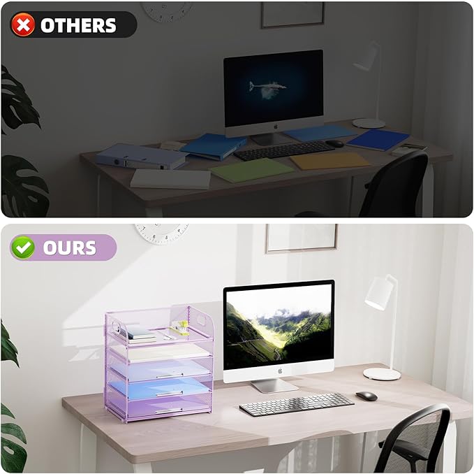 - 【PREMIUM QUALITY】The mesh desktop file organizer is made of lightweight durable metal mesh and reinforced with a solid steel frame that makes it have long-lasting strength and reliable performance.