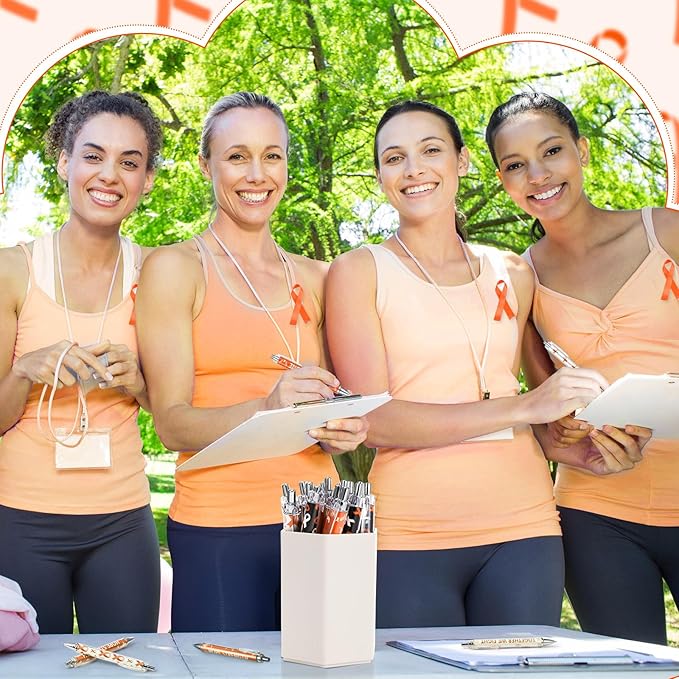 48 Pcs Orange Awareness Ribbon Pens Cancer Awareness Ballpoint Pens Bulk Faith Courage Hope Strength Health Awareness Favor Gifts for Leukemia Lymphoma Cerebral Cancer Awareness Support
