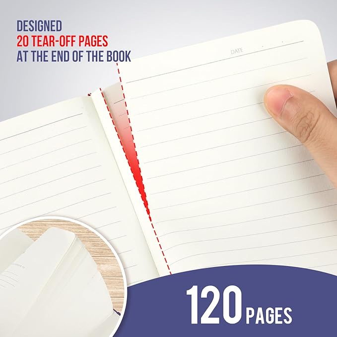 - 【3 Pack Notebooks】Our pocket notebook set offers 3 colors mini notebooks, ideal for students, professionals, businessmen and travelers. With 40 sheets plus 20 tear-off sheets (a total of 120 pages), you'll record your thoughts and ideas at any time