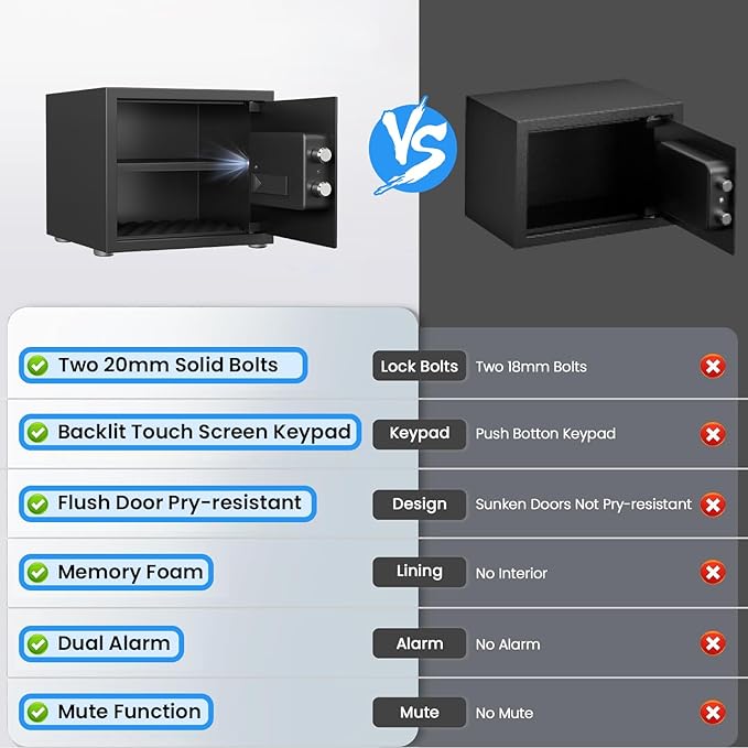 Kavey 0.8 Cub Safe Box, Biometric Safe with Backlit Touch Screen Keyapd and Fingerprint Lock, Home Safe with Dual Alarm System and Mute Function, Small Safe Box for Money Documents Valuables, K-25W