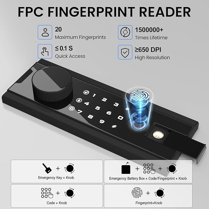 - ADVANCED BIOMETRIC RECOGNITION, SMART CONVENIENCE - Here's the scoop on the bio fingerprint upgrade: Kavey home safe now features a top-notch high-resolution biometric sensor that can detect details at 650 DPI and unlock in a speedy 0.1 seconds. Plus, it can store up to 20 different fingerprints, making it a breeze for multiple users to share access. How impressive is that, right?