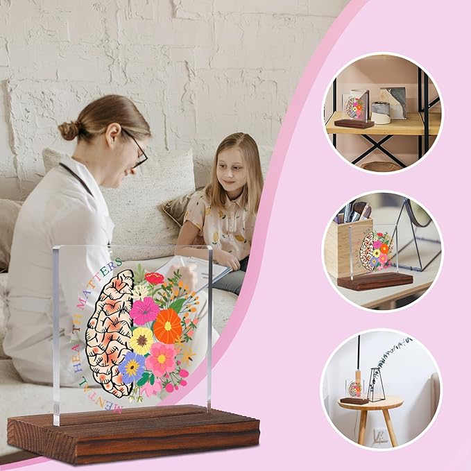 - Robust Construction: Made with high-quality acrylic and a wooden base, the sign's robust build ensures it stands as a long-lasting addition to any professional setting, continually reminding of the vital role of mental health care.