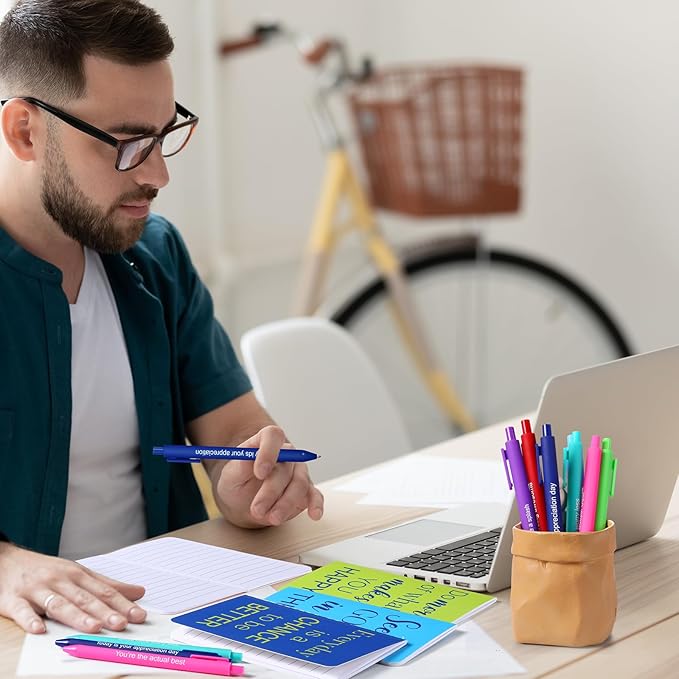 - Motivational Quotes: these small note pads and motivational pens are designed with different inspirational quotes, such as [See the good in all things], [You‘re the actual best], [Let's make a splash] and more, easy to bring you happy mood, help to develop a positive mindset