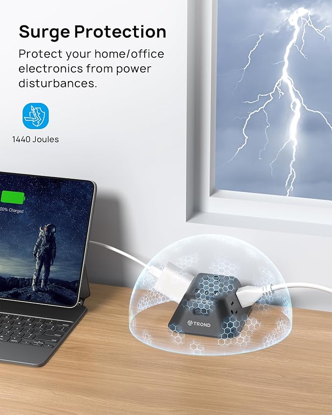 • Power Strips with Surge Protection: This power strip surge protector With 1440 joules of surge protection, safeguards your home/office equipment such as TV, computer, printers, copiers, and routers from voltage fluctuations, surges, and spikes