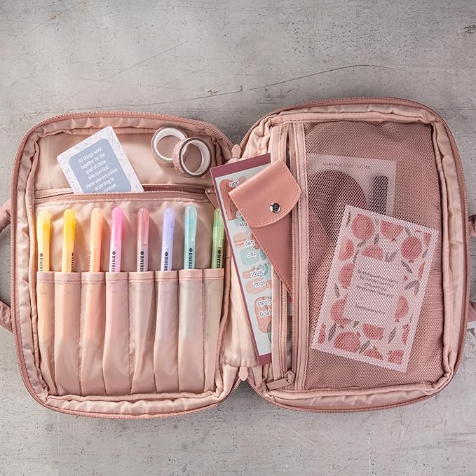 - Multipurpose Organizer: Can be an excellent Bible holder, journal case, paperback book cover, makeup cosmetic bag, tablet case, Bible study book bag, etc. The additional inner pockets allow you to store Bible highlighters, pens, prayer journals, church bulletins, sermon notes, prayer cards, notes or bookmarks.
