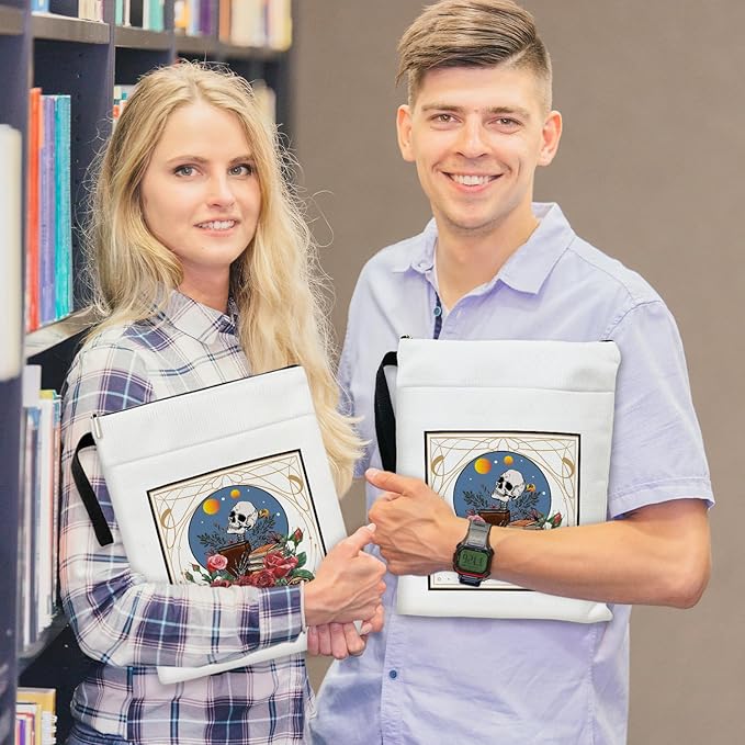 Gothic Skeleton Book Sleeve, Book Lovers Gifts Book Pouch Book Sleeve with Zipper and Front Pocket Reader Gifts Birthday Gifts for Adult Teen Teacher -03