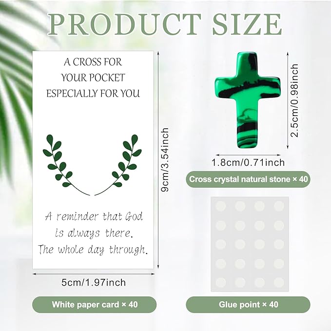 - Natural Prayer Pocket Crosses Set: our product richness exceeds expectations, bringing you 40 holy Christian cards, 40 glue point dots and 40 crystal cross stones, the natural stones crafts come in 8 styles, 5 of each style; Such a rich quantity ensures that you can always express care and encouragement to many friends; Enter a world of opportunities for expression