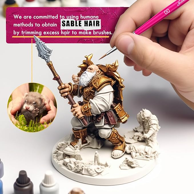 - 【MATERIALS UPGRADE】Crafted from high-grade kolinsky hair, these sable paint brushes ensure superior performance and longevity. The fine bristles are soft yet resilient, allowing for precise detailing and smooth application. These detail paint brushes are perfect for various kinds of painting for acrylic, watercolor, gouache, miniatures, detailing, craft, model and 40k etc.