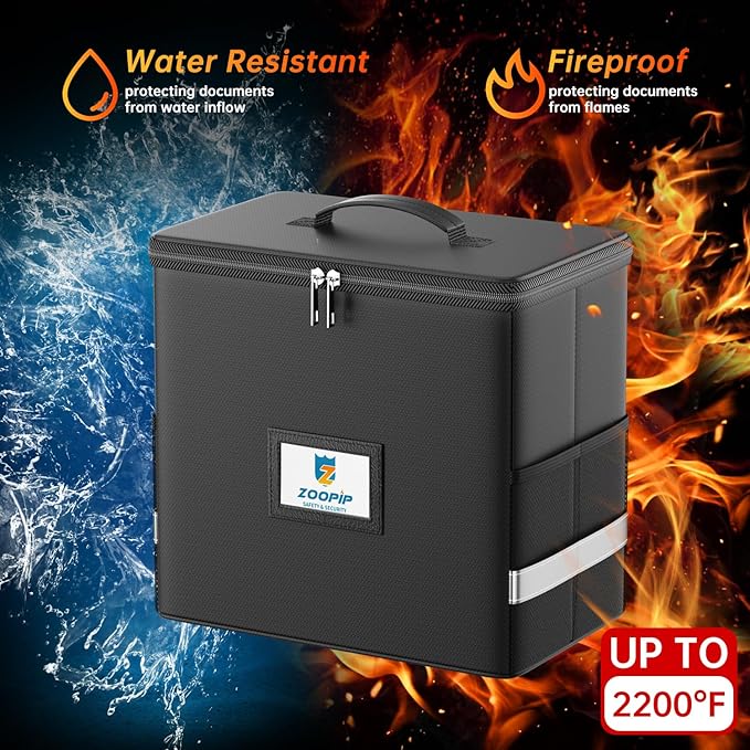 - đĽđĽăFireproof and WaterproofăZOOPIP Fireproof box with zipper is made of not sticky Dust-proof Silicone coated fiberglass, which can withstand temperatures up to 2000°F. Fireproof Money Saving Binder has been passed by SGS TEST:UL94 VTM-0 Certified. At the same time, the glass fiber has excellent waterproof performance. In most cases, our binder can withstand the impact of water.