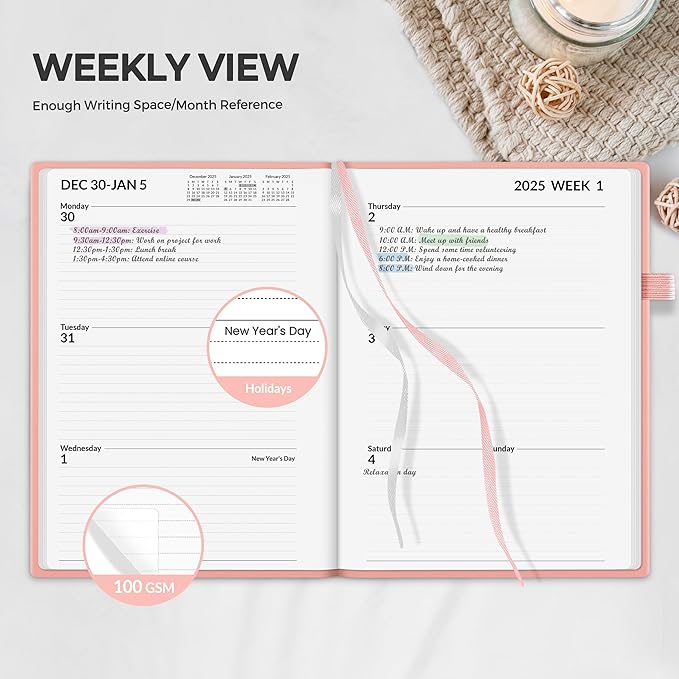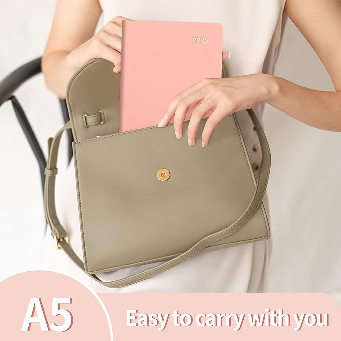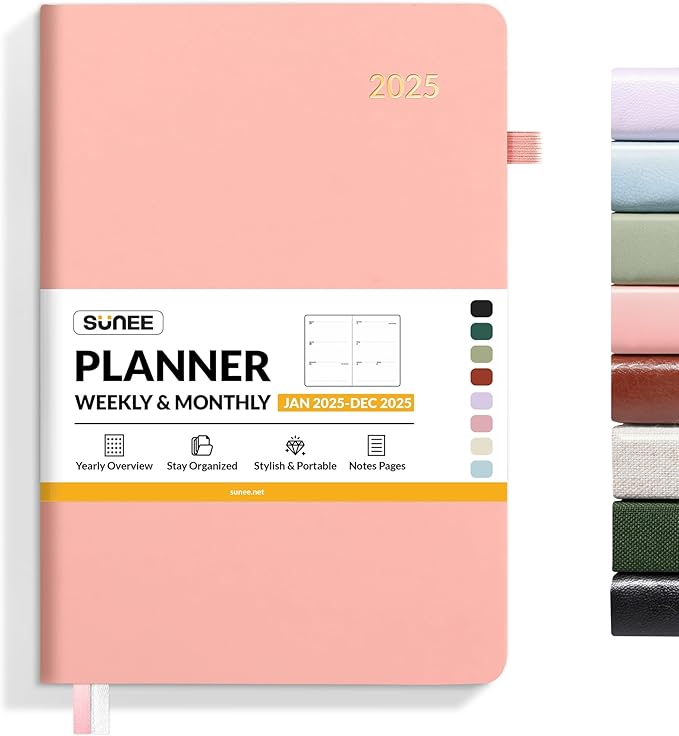 SUNEE 2025 Weekly & Monthly Hardcover Planner 5.5" x 8.3" - 12 Month (January 2025 - December 2025), Small Hardcover Planner, Pocket, Notes, 100 GSM Paper, Peach Pink