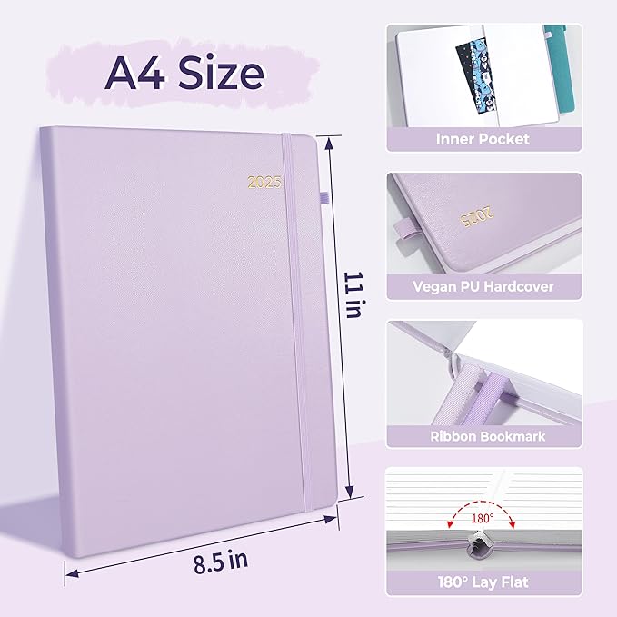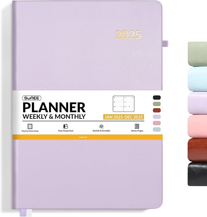 SUNEE 2025 Weekly & Monthly Hardcover Planner 8" x 11" - 12 Month (January 2025 - December 2025), Small Hardcover Planner, Pocket, Notes, 100 GSM Paper, Light Purple