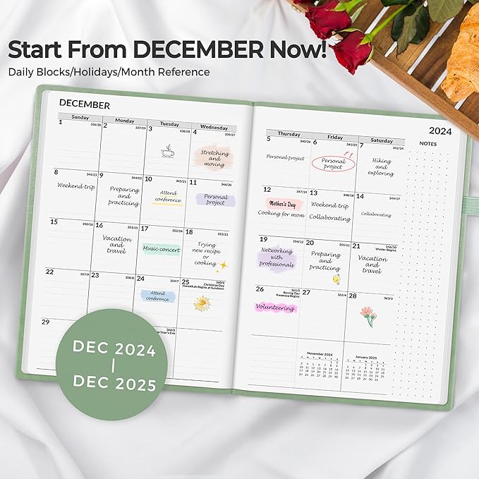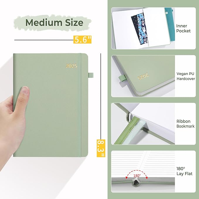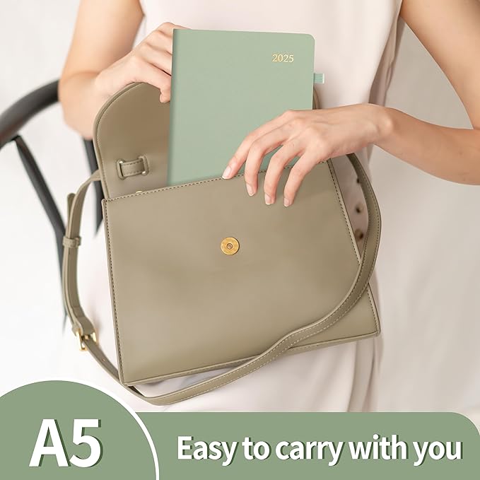 SUNEE 2025 Weekly & Monthly Hardcover Planner 5.5" x 8.3" - 12 Month (January 2025 - December 2025), Small Hardcover Planner, Pocket, Notes, 100 GSM Paper, Sage Green