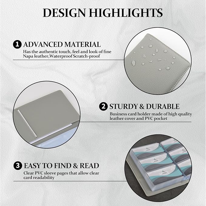 - EASY TO USE: Card holder book made of high-quality leather cover and transparent PVC pocket sheets allow you to quickly access the card. With this business card storage, all cards are together and can be stored safely.