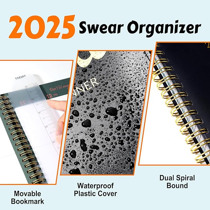 2025 Fuck It Planner for Tired-Ass Women, 6.4" x 8.3", 12 Months Funny Weekly Organizer With Sweary and Badass Affirmation, White Elephant Gifts for Adults Funny, JAN - DEC 2025, Black