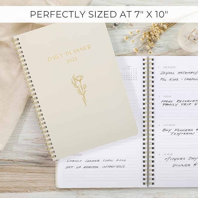 Beautiful 2025 Daily Planner - 7" x 10" Daily Planner for Women or Men with Weekly & Monthly Spreads for Easy Planning - Perfect Calendar Book To Organize All Tasks and Boost Productivity