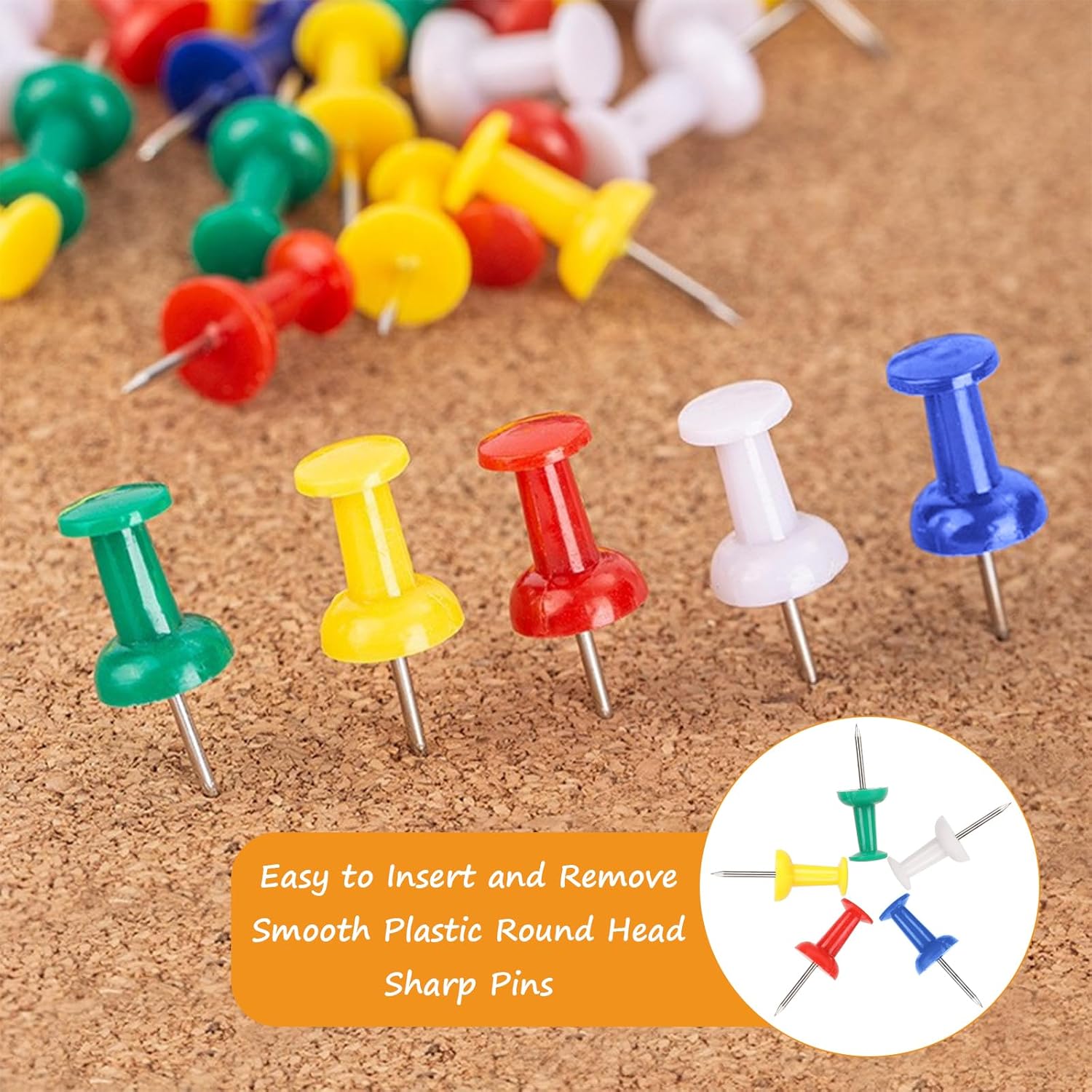 - 【Premium Quality】Push Pins Tacks are made of high-quality plastic head and solid nickel-plated steel. The end of the thumbtacks for bulletin board pins is sharp, sturdy , and durable which is easy insert into tough surfaces such as bulletin boards, cork boards, notice boards, foam boards, and paper boards.